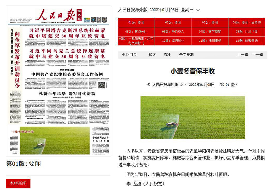《人民日报》(海外版)等多家报纸重要版面报道华阳河冬季田管新闻