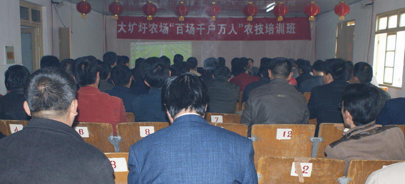 426,大圹圩农场结合当前农时和备耕工作需要,举办了一期百场、千户、万人农业科技培训班,本场农业管理人员、职工和周边农民共70余人参加培训,认真听取了江苏淮安农科院、安徽省神农农业技术开发有限公司专家开设的机插稻育壮秧技术和小麦后期田间管理讲座。