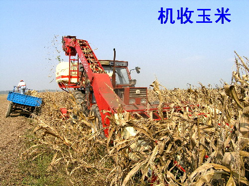 到10月5日下午,该场已收获大豆玉米等秋季作物15500亩,约占秋收任务的50%。图为机收玉米场景。(杨登宏)