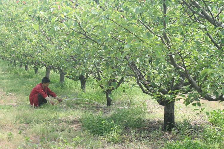 自3月以来砀山县域内一直无有效降雨,两个多月的旱情影响了水果正常生长。砀山果园场组织动员职工抗旱确保果树生长,开动了节水灌溉系统,充分利用果园机井和黄河故道水源浇灌果树。在浇灌安排上结合不同水果生长发育的特性,做到桃树优先,高效园优先;在浇灌方式上采取渗灌和漫灌相结合;在浇灌组织上充分发挥职工的主观能动性。目前全场60%以上的果园得到了有效浇灌,极大地缓解了旱情。