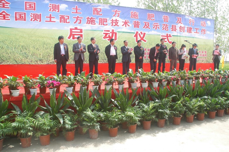 4月28日,2010年全国测土配方施肥普及行动暨全国测土配方施肥技术普及示范县创建活动启动仪式在安徽垦区水家湖农场隆重举行。农业部种植业管理司司长叶贞琴、副司长胡元坤,全国农技中心副主任栗铁申,全国测土配方施肥专家委员会部分委员,各省土肥站站长,安徽省农委、合肥市农委、长丰县委县政府、水家湖农场等单位领导同志和部分农工农民参加了启动仪式。启动仪式由栗铁申副主任主持,农业部相关单位、省农委、长丰县等领导分别致辞。
