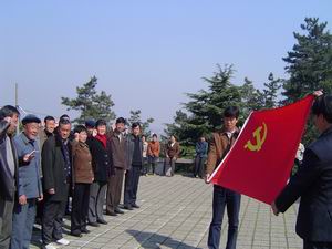 图片说明:月31日,龙亢农场五、八分场党支部开 展保持共产党员先进性教育主题实践活动,30多 名党员来到蚌埠烈士陵园,缅怀革命烈士伟绩,坚 定了共产主义信念。图为党员在烈士陵园重温入党 誓词。(邵乃昌)