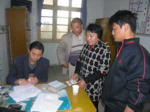 今年征兵工作开展以来,潘村湖农场按照上级有关 部门的统一部署,在全场开展广泛的宣传发动工作. 广大适龄青年响应国家号召踊跃报名应征.图为适 龄青年在家长陪同下到场武装部报名的情景.(杨登 宏摄)